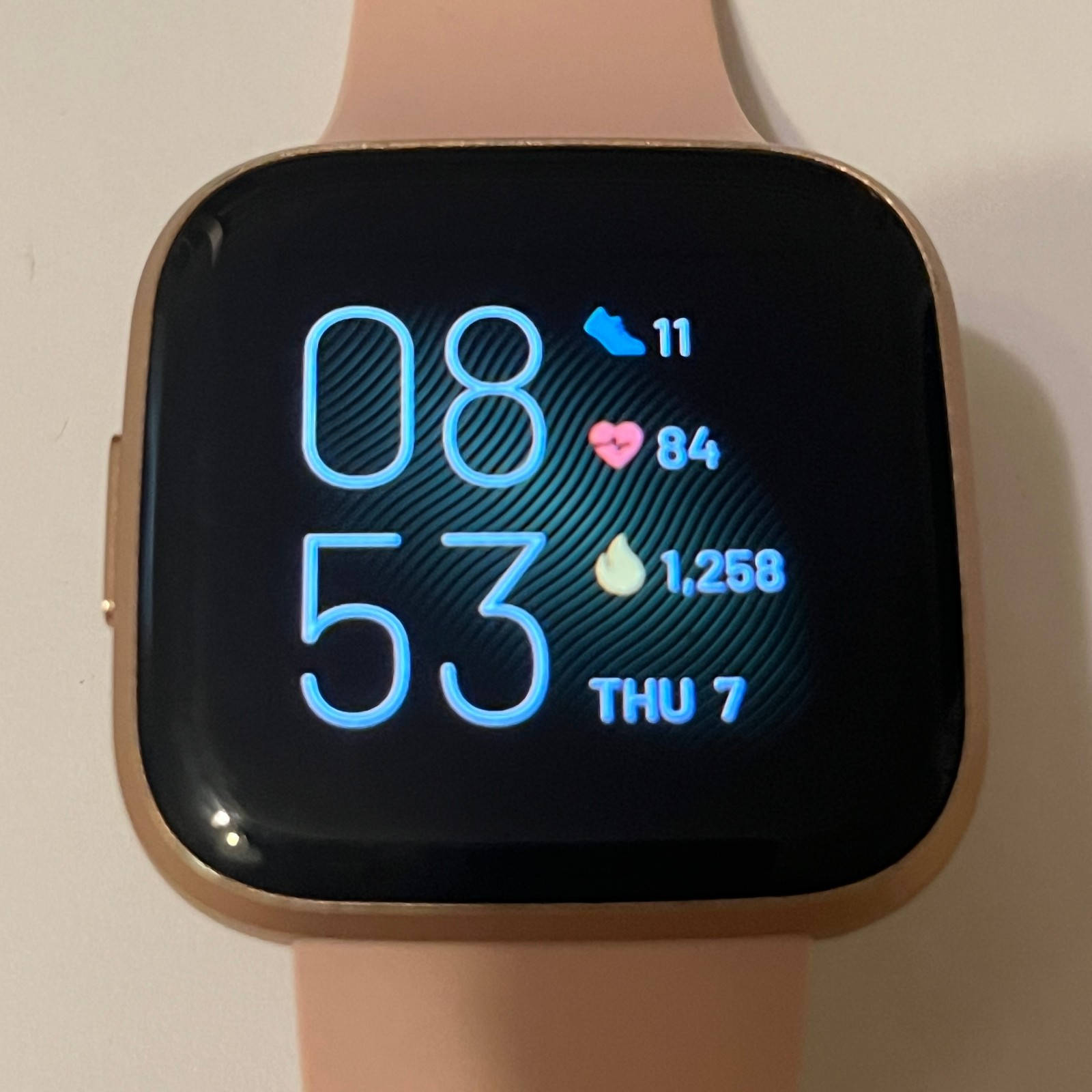 Description: Fitbit Versa 2 - Health & Fitness Smart Watch Copper Rose / Pink Band FB507