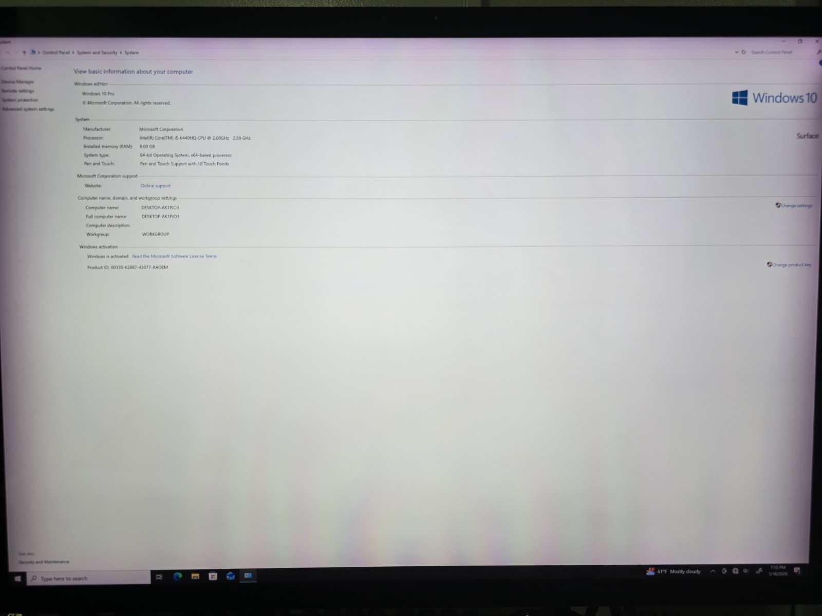Description: Microsoft Surface Studio i5-6440 HQ 8 GB RAM 1TB Hybrid HDD GTX 965M 2GB